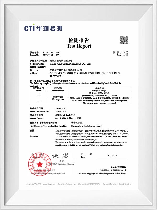 Walson تأسست الإلكترونيات في 2001, مع أكثر من 20 عاما من الخبرة في R&D, تصنيع وبيع وخدمة المكثفات الفيلم. مخصص مكثف مرشح تيار متردد أحادي/ثلاثي الطور من سلسلة WAS الشركات المصنعة و مكثف مرشح تيار متردد أحادي/ثلاثي الطور من سلسلة WAS مصنع